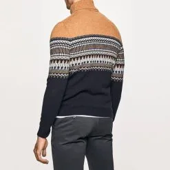 Hackett London Camel Fairisle Pattern Wool Roll Neck Jumper